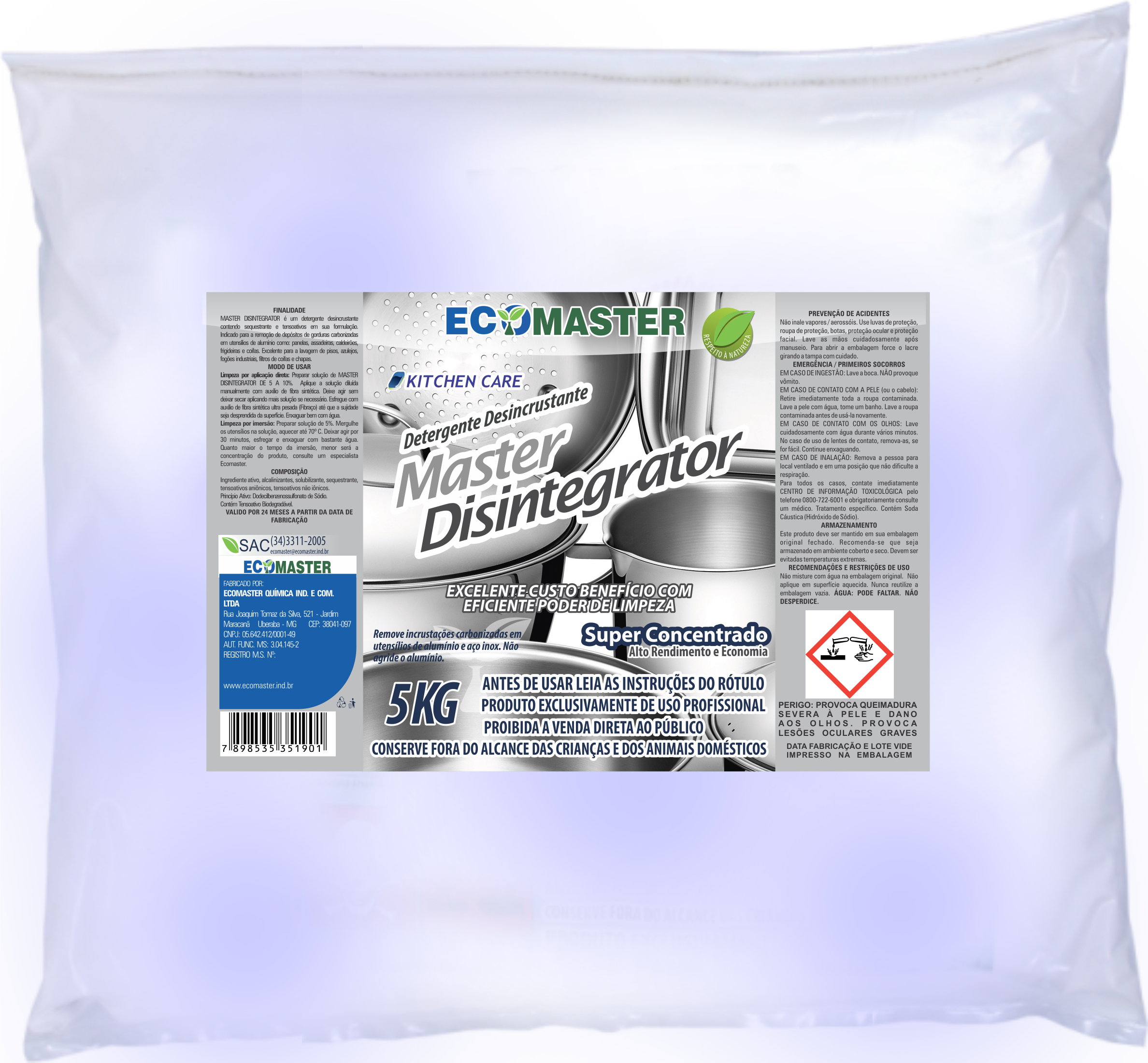 O MASTER DISINTEGRATOR é um detergente em pó desincrustante alcalino, desenvolvido para remover com alta eficiência incrustações e sujeiras carbonizadas em utensílios e superfícies de alumínio e aço inox. É ideal para limpezas pesadas em cozinhas profissionais e indústrias de alimentos, ajudando a recuperar panelas, assadeiras, caldeirões e outros itens com sujeira impregnada.