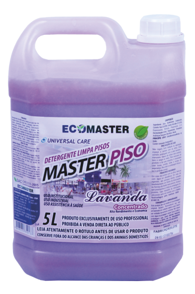 O MASTER PISO Lavanda é um detergente concentrado e biodegradável, desenvolvido para proporcionar limpeza eficiente e econômica em pisos e superfícies laváveis em geral. Com pH balanceado, ele remove sujidades do dia a dia com excelente desempenho, ajudando a manter o ambiente sempre limpo, bem cuidado e com agradável fragrância de lavanda.